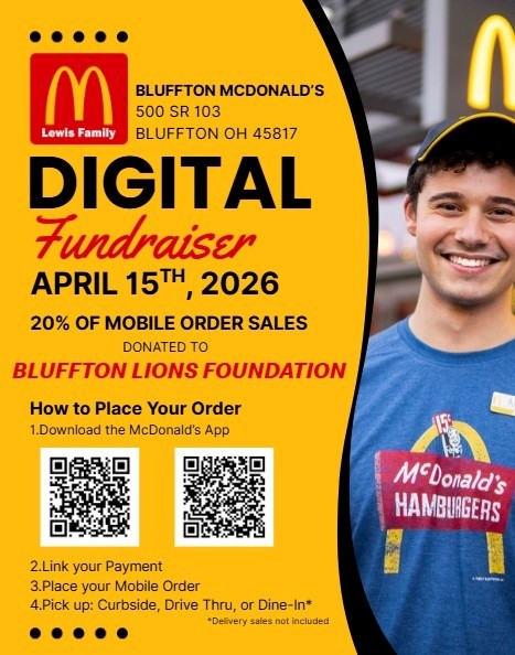 When you place your order using the McDonald’s Mobile App at the Bluffton McDonald’s, 20% of your purchase will be donated to the Bluffton Lions Foundation to support the playground project.